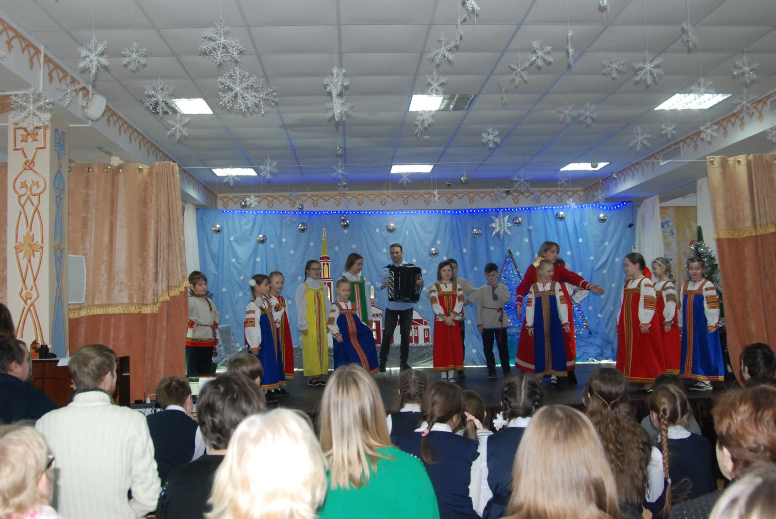 7 января ,в праздник Рождества Христова, в Храме состоялась божественная литургия. Учащие и учащиеся исповедовались и причастились. Далее праздник продолжился в школе, где состоялась трапеза и праздничный концерт, на котором выступил школьный театр и фольклорный ансамбль. По окончании концерта всех ребят встретили Дед Мороз и Снегурочка у Рождественской ёлки. Ребята водили хороводы, пели песни, играли в игры. Каждый ребёнок ушёл домой с рождественским сладким подарком.