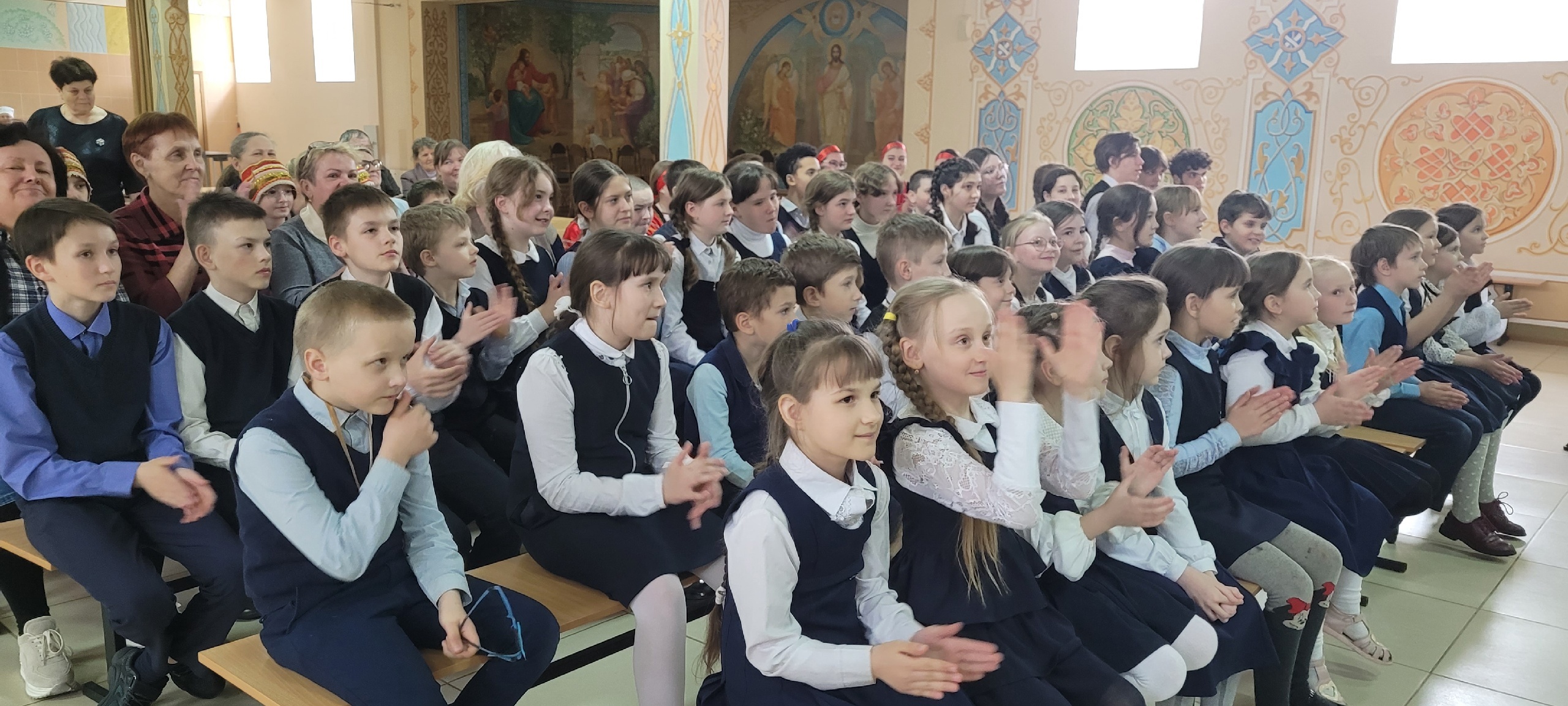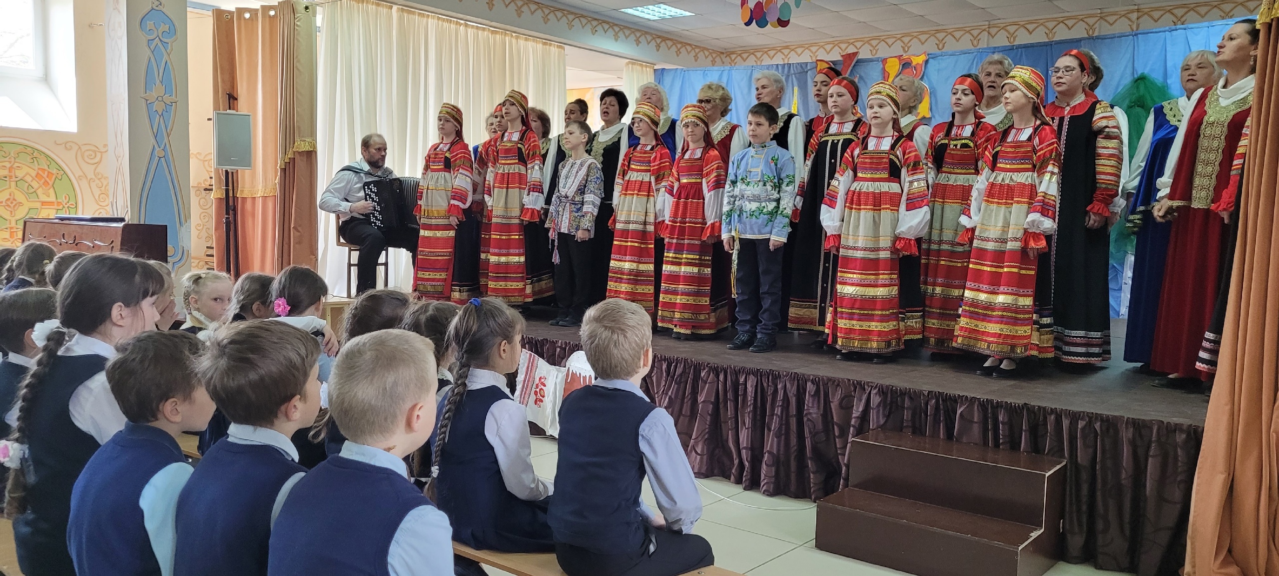 14 мая нашу школу посетили народный ансамбль «Суздалянка» и образцовый фольклорный коллектив «Брянички». В их исполнении прозвучали патриотические песни. Зрители тепло принимали коллективы и с удовольствием подпевали знакомые песни.