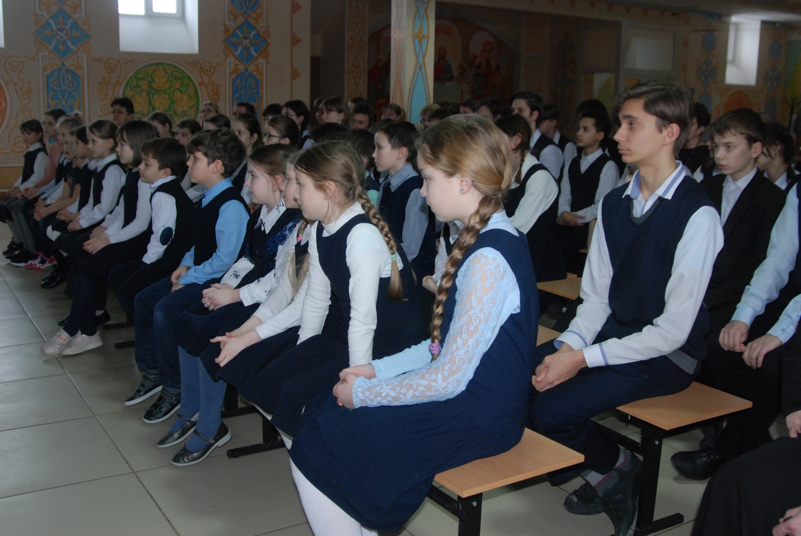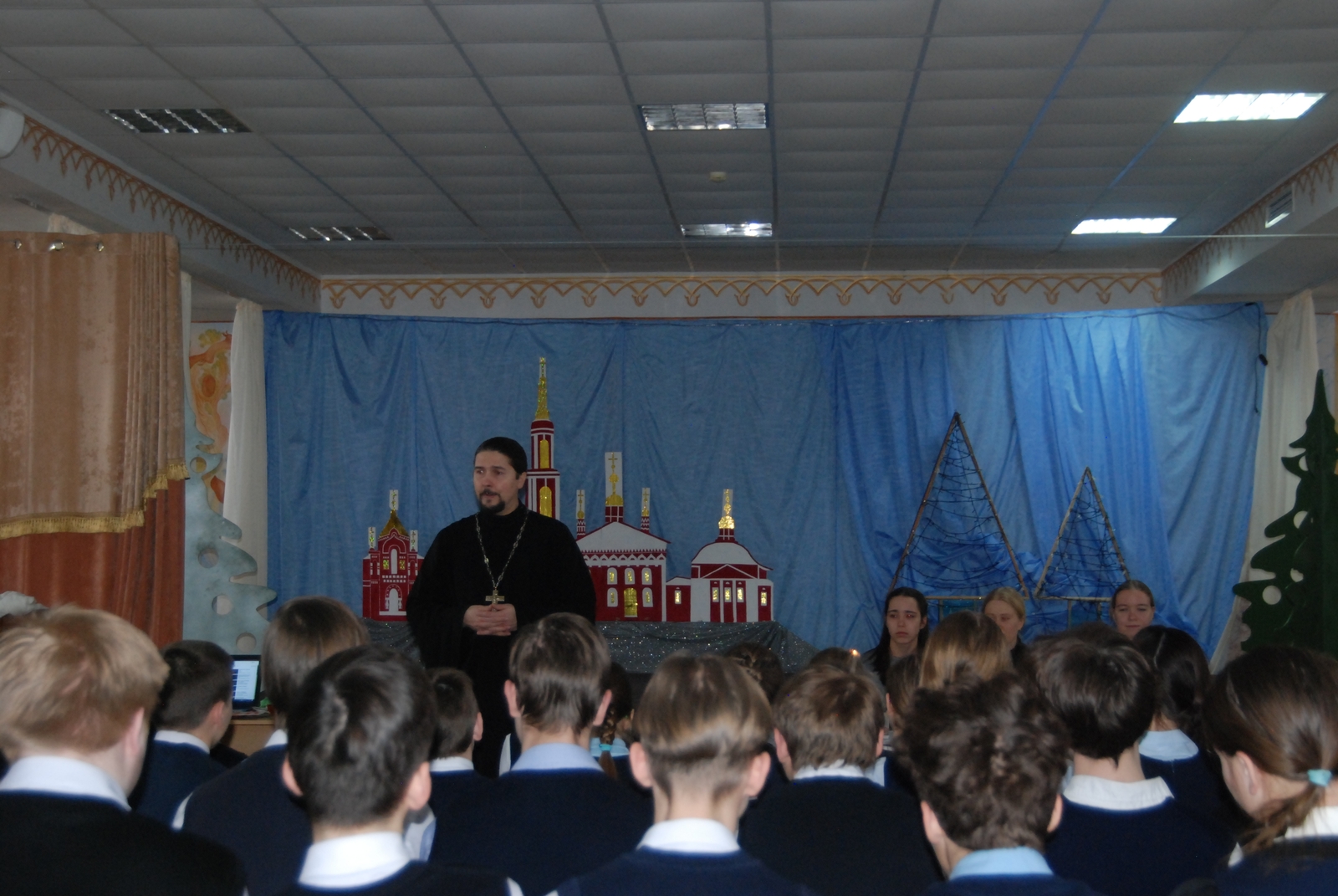 2 февраля, во второй половине дня, в школе состоялась встреча с творческой группой, возглавляемой священником Владимиром Торговым, который духовно окормляет Детскую областную больницу и несёт служение в университетском храме Св. Кирилла и Мефодия. Звучали духовные стихи и песни.