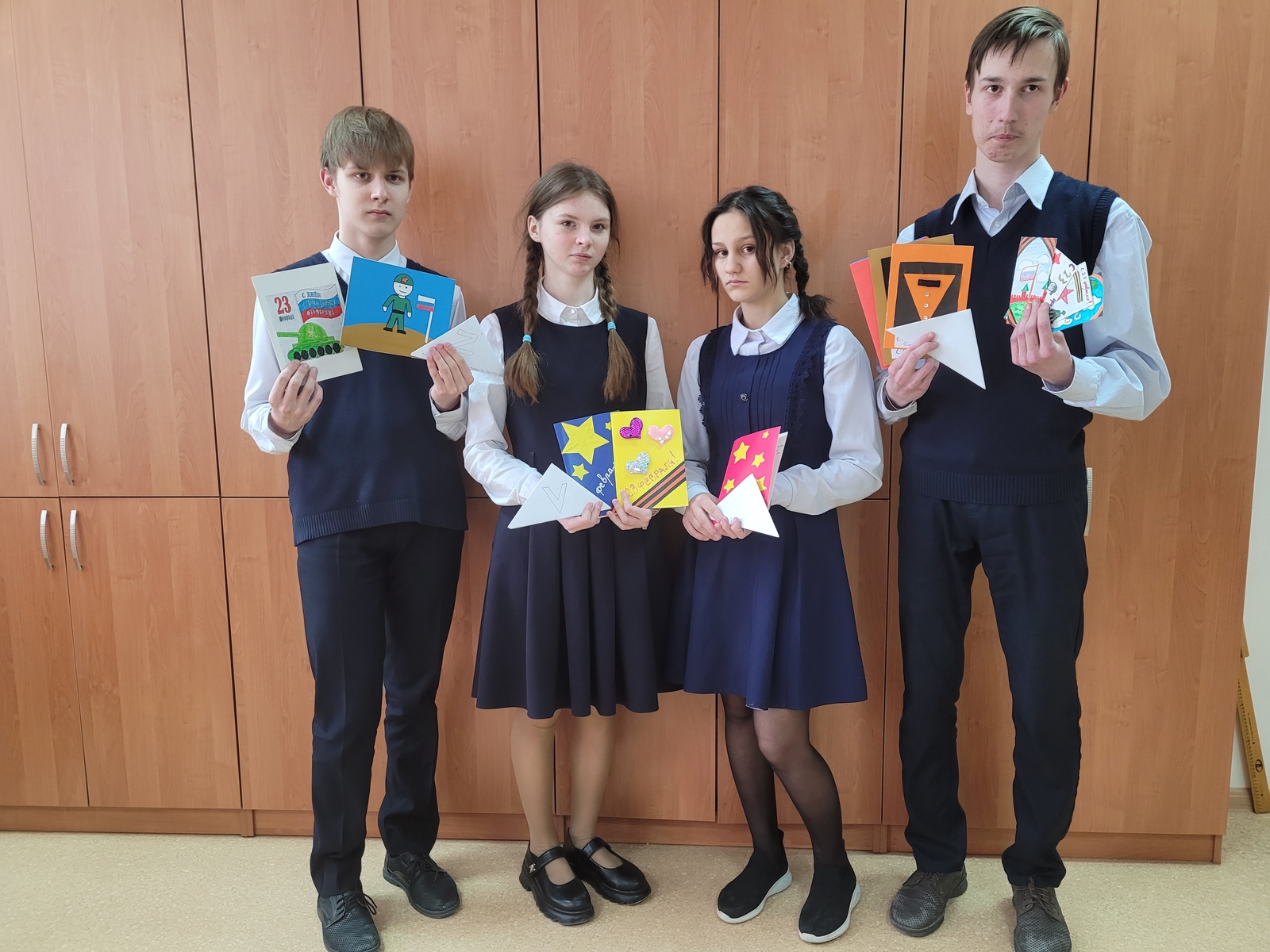 В преддверии Дня защитника Отечества в Суздальском районе проводится акция «Поздравь Защитника». В рамках проведения акции в школе был организован сбор подарков , которые отправят в батальоны, в которых проводят подготовку и службу владимирские и суздальские военные, мобилизованые и добровольцы. Кроме подарков обучающиеся нашей школы написали солдатам письма и сделали поздравительные открытки.