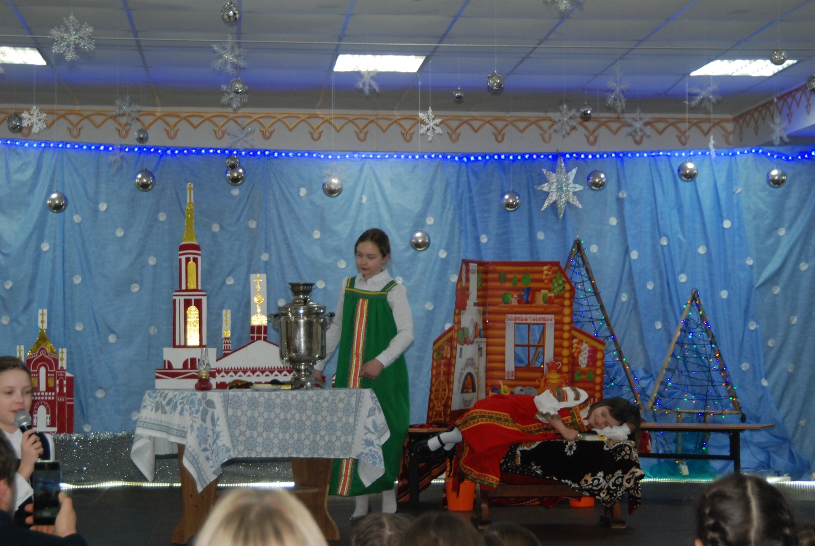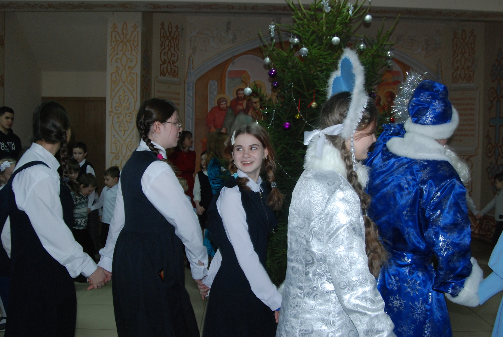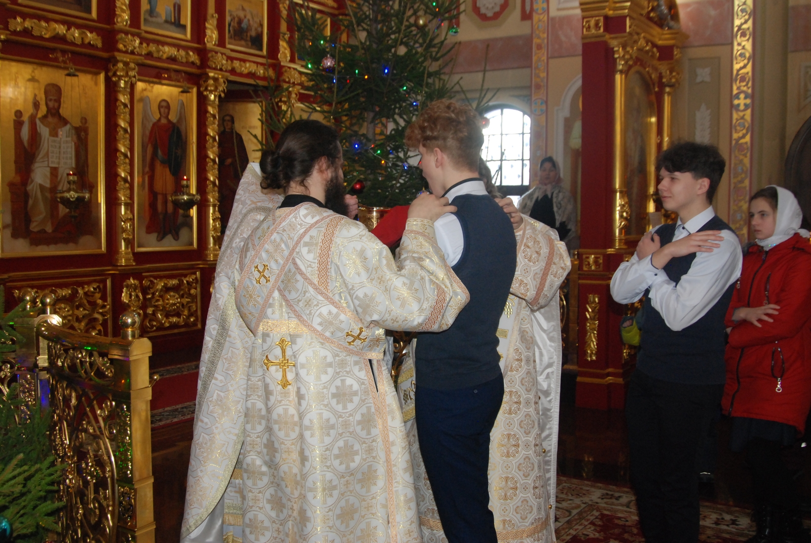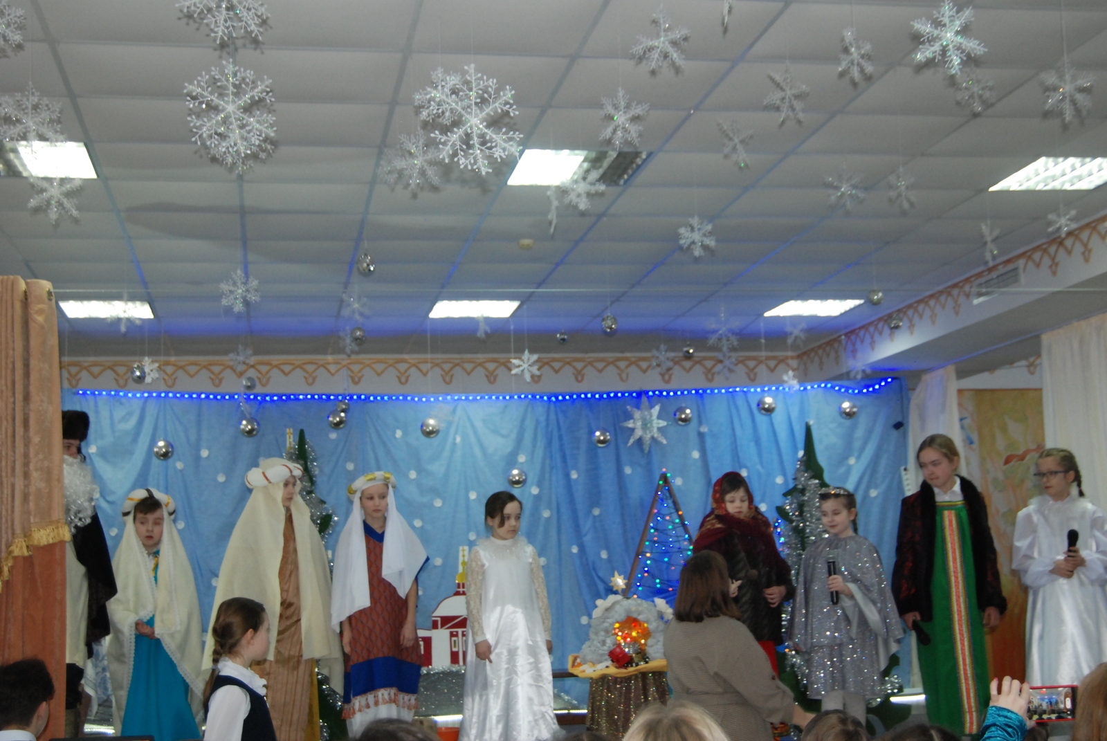 7 января ,в праздник Рождества Христова, в Храме состоялась божественная литургия. Учащие и учащиеся исповедовались и причастились. Далее праздник продолжился в школе, где состоялась трапеза и праздничный концерт, на котором выступил школьный театр и фольклорный ансамбль. По окончании концерта всех ребят встретили Дед Мороз и Снегурочка у Рождественской ёлки. Ребята водили хороводы, пели песни, играли в игры. Каждый ребёнок ушёл домой с рождественским сладким подарком.