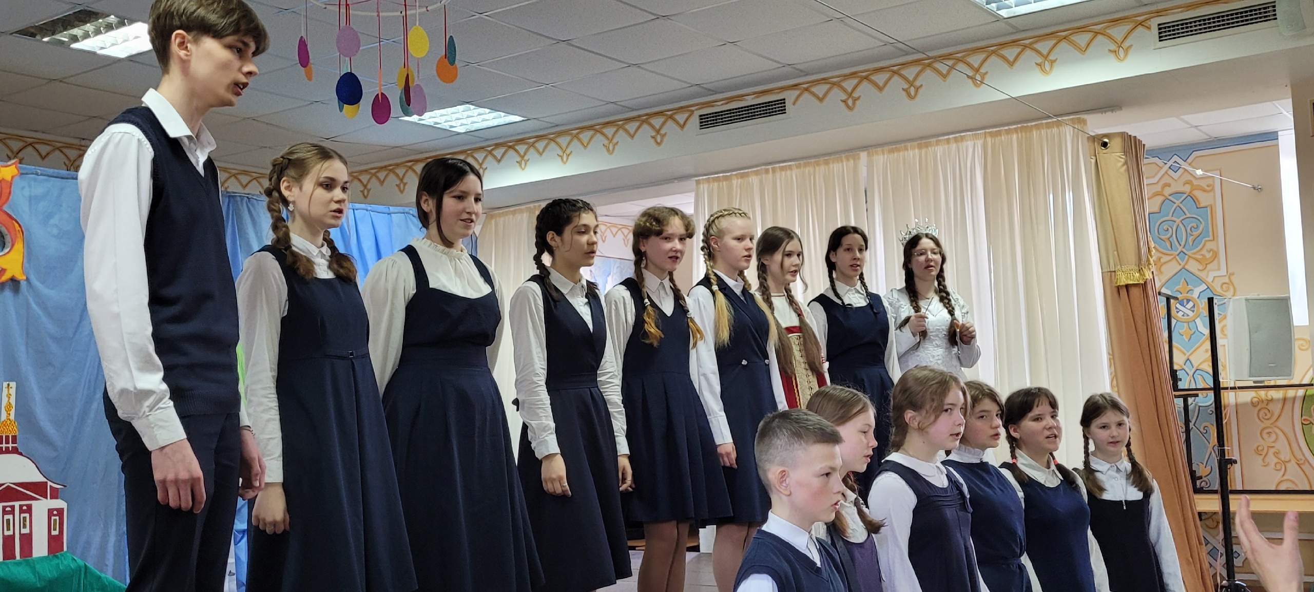 Христос Воскресе! Празднование Светлого Праздника Пасхи началось в храме Флора и Лавра: Крестный ход, Литургия, Причастие, освящение куличей и яиц. После небольшого отдыха праздник продолжился в стенах школы. Для всех присутствующих была представлена концертная программа. Выступили вокальный и фольклорный ансамбли, школьный театр «Росток». В прекрасном настроении все разошлись на Пасхальные каникулы.