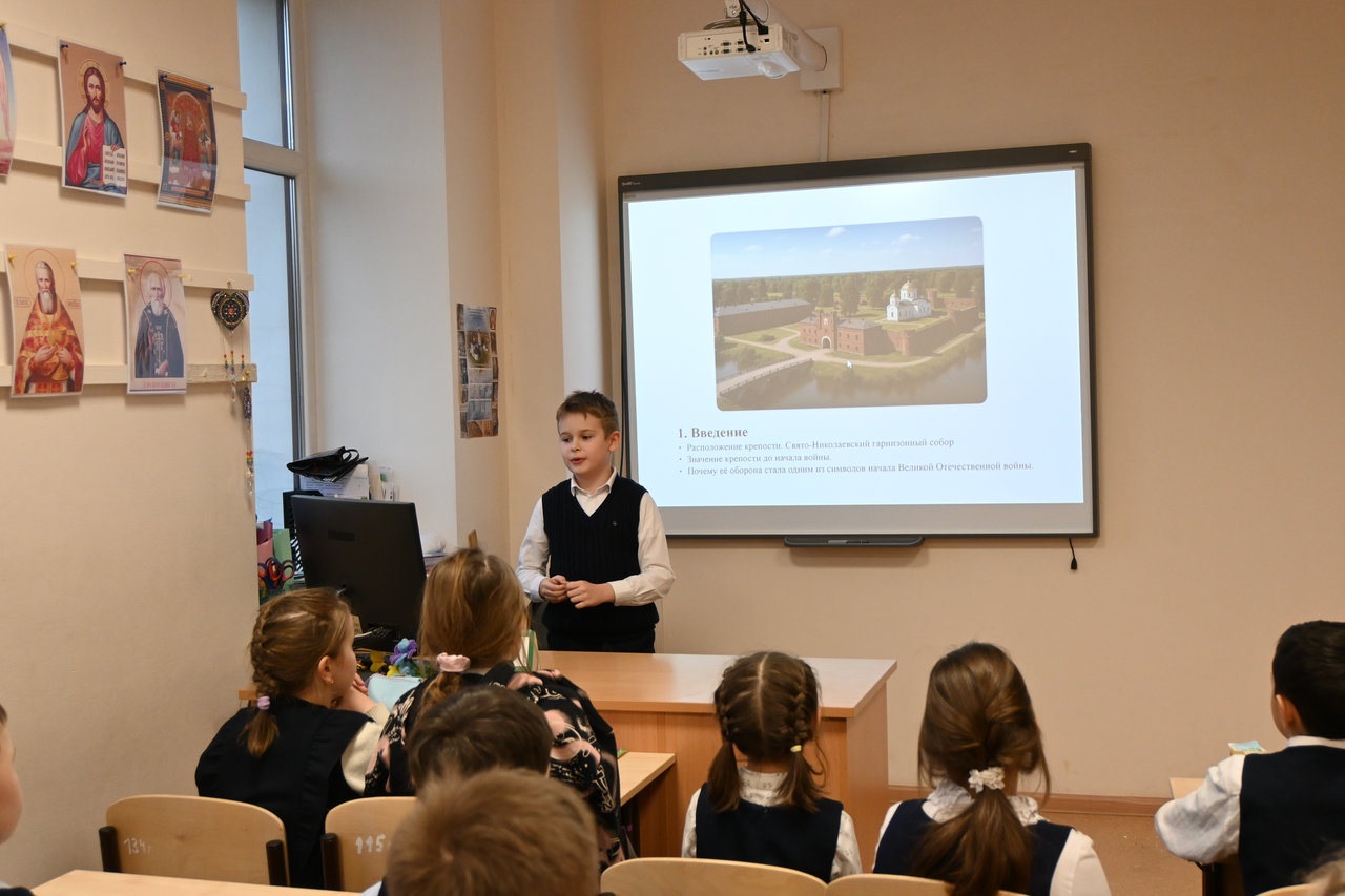 В рамках мероприятий, посвященных празднованию Дня Героев Отечества, в начальной школе прошёл Урок Мужества «Подвиг Защитников Брестской крепости». С докладом и презентацией по теме выступил обучающийся 3 класса. Ребята слушали внимательно, прониклись темой сообщения и задавали вопросы о событиях того времени. Докладчик достойно ответил на все вопросы.