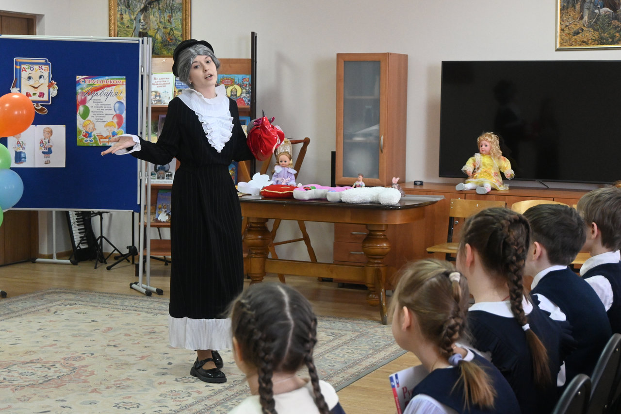 В гости к ребятам пришли сказочные герои: Азбука, Вовка из Тридевятого Царства, Двойка и Единица, Шапокляк. Они развеселили ребят, играли с ними, пели песни, танцевали. Проверили, как ребята знают буквы алфавита, названия сказок.